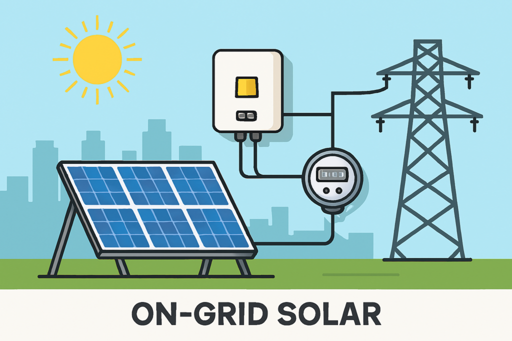 An On-Grid Solar System is connected to the government electricity grid (DISCOM).