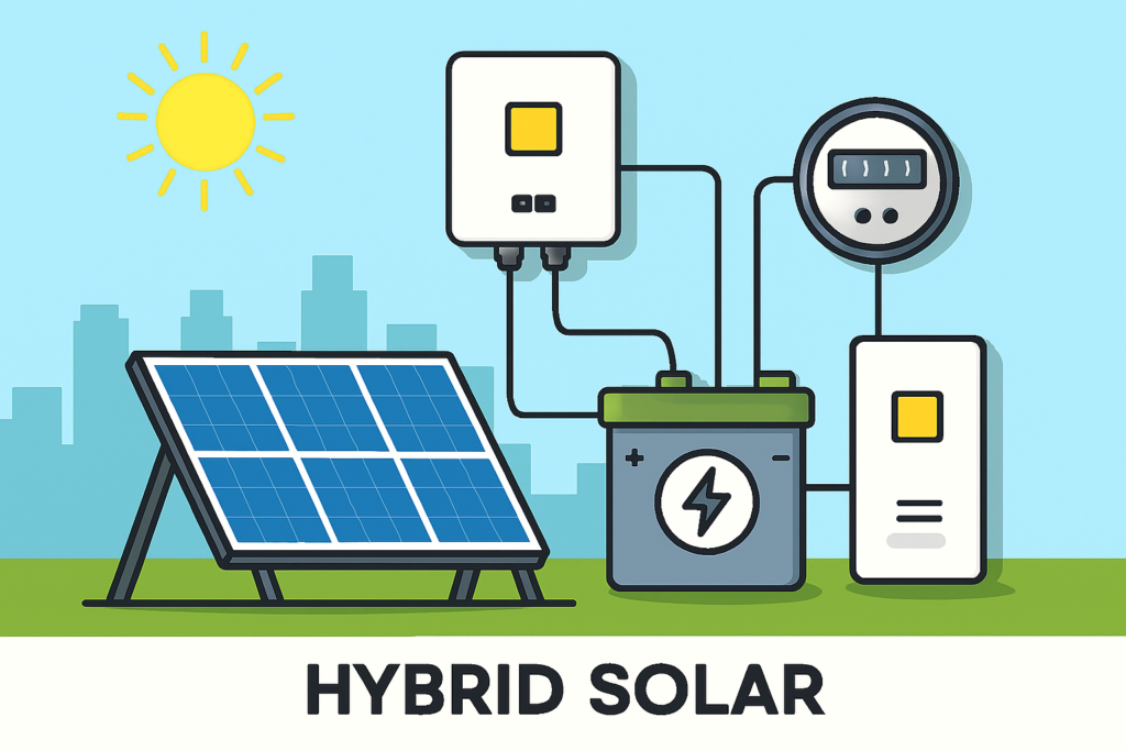 A Hybrid Solar System combines the benefits of both on-grid and off-grid systems.